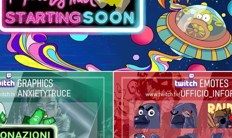 Avete bisogno di icone, banner per il vostro sito web, o emote per i vostri vari social? Qui troverete alcuni esempi commissionati da youtuber e streamer!